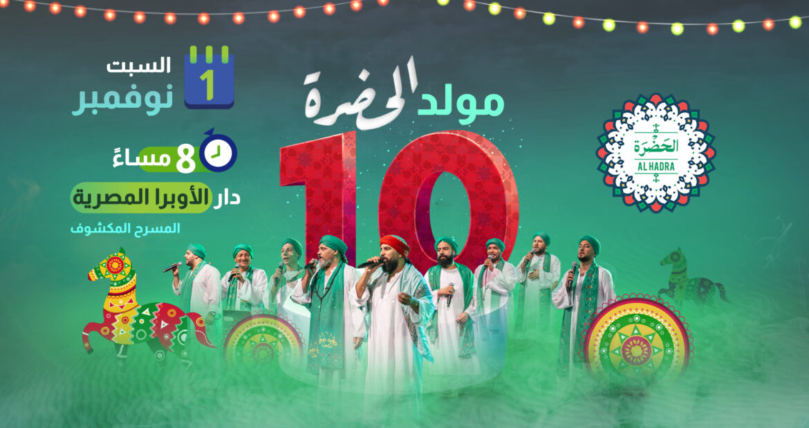 نتشرف بدعوتكم للإحتفال معنا بعيد ميلاد فرقة الحضرة العاشر، اللي هنقدم فيه أشهر القصائد اللي قدمتها الفرقة على المسارح المختلفة على مدار 10 سنوات,وكمان هيكون معانا ضيوف مميزين ونجوم كبار بتحبوهم زي كل سنة
